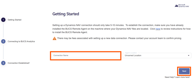 To connect you will need the BUCS Remote Agent installed on the machine where your Dynamics NAV data is located. Remote Agent installation instructions can be accessed here.