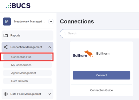 - Navigate to BUCS Customer Portal > Connection Management > Connection Hub.