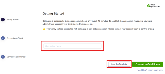 - Provide a descriptive name for the connection such as the company you are inviting and the data connection system. Click Send One-Time Invite.