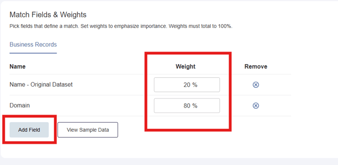 - Click Add Field to add an attribute as a factor to be used in the matching process.