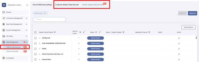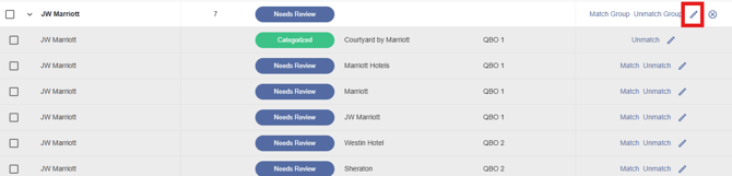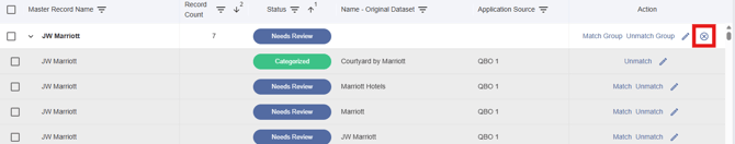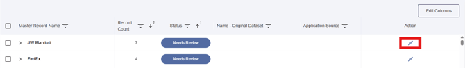 - Click Edit icon to expand Master Record and review individual records categorized to that Master Record.