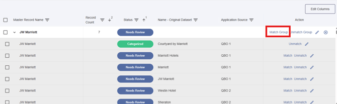 - If all records are accurately classified, click Match Group to match all individual records in the group to the Master Record Name.