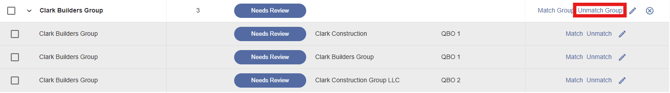 - If all records are inaccurately classified, click Unmatch Group to Unmatch all individual records in the group. Each individual record will then become it's own master record with the name from the original dataset listed as the Master Record Name.