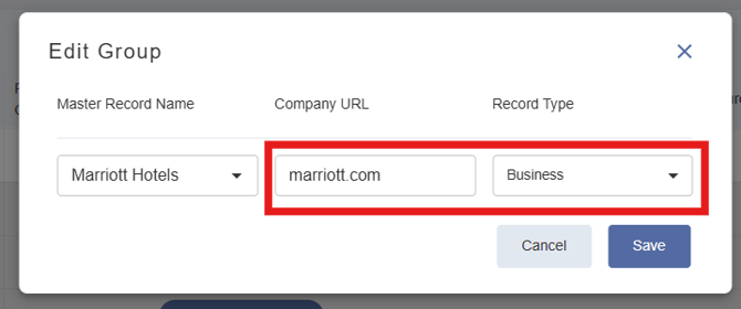 - Additionally, for data accuracy purposes you can update the Company URL and Record Type if needed.