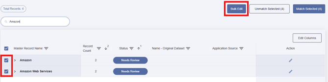 - Search or filter to narrow down to a specific dataset and select multiple records to make bulk edits. Click Bulk Edit.