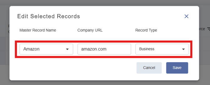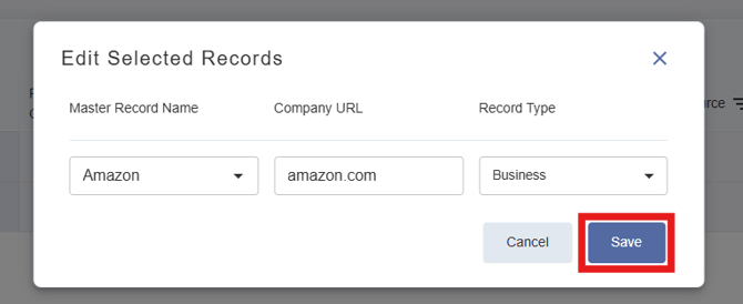 - Click Save. All records selected are now assigned to the Master Record Name specified.