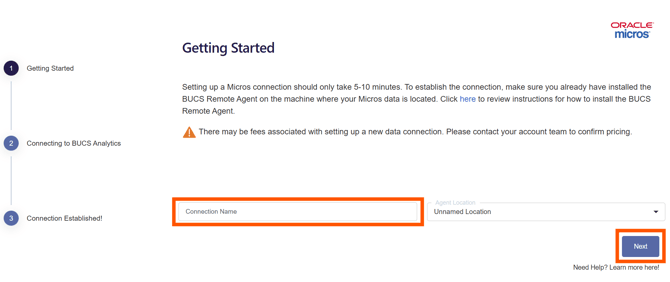 To connect you will need the BUCS Remote Agent installed on the machine where your Micros data is located. Remote Agent installation instructions can be accessed here.Implementation