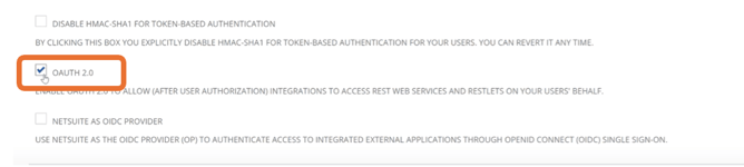 5. Scroll to Manage Authentication section and ensure OAUTH 2.0 box is checked.