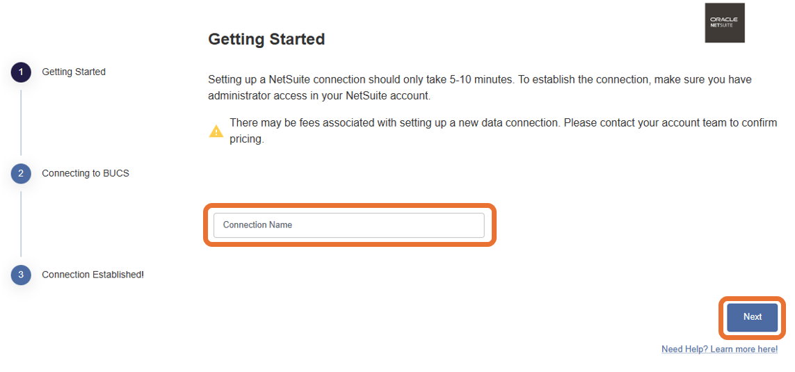 5. If the connection was successfully established, you will see a message that data from NetSuite is now syncing to BUCS.  If the connection was not successful, you will be asked to try again.