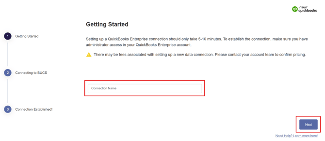 If the connection was established successfully, you will see a Connection Established message and data from QuickBooks Enterprise will continuously sync to BUCS. If the connection was not successful, you will be asked to try again.